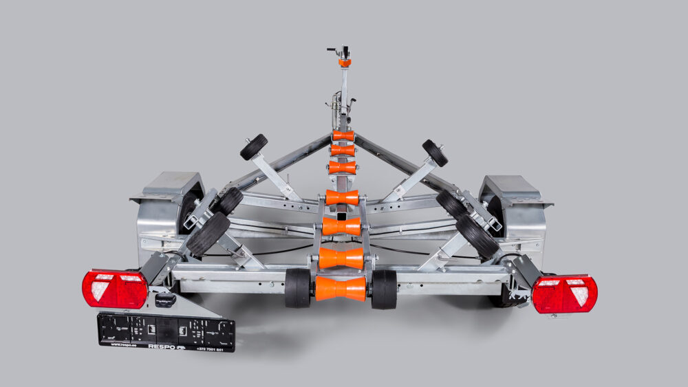 Respo 1500 P er vår største enakslede henger. Den passer for båter opp til 21 fot. Som 1350P har denne også 14“ hjul og de mange kjølrullene gir mulighet til å spre vekten på båten til flere separate bærepunkter.