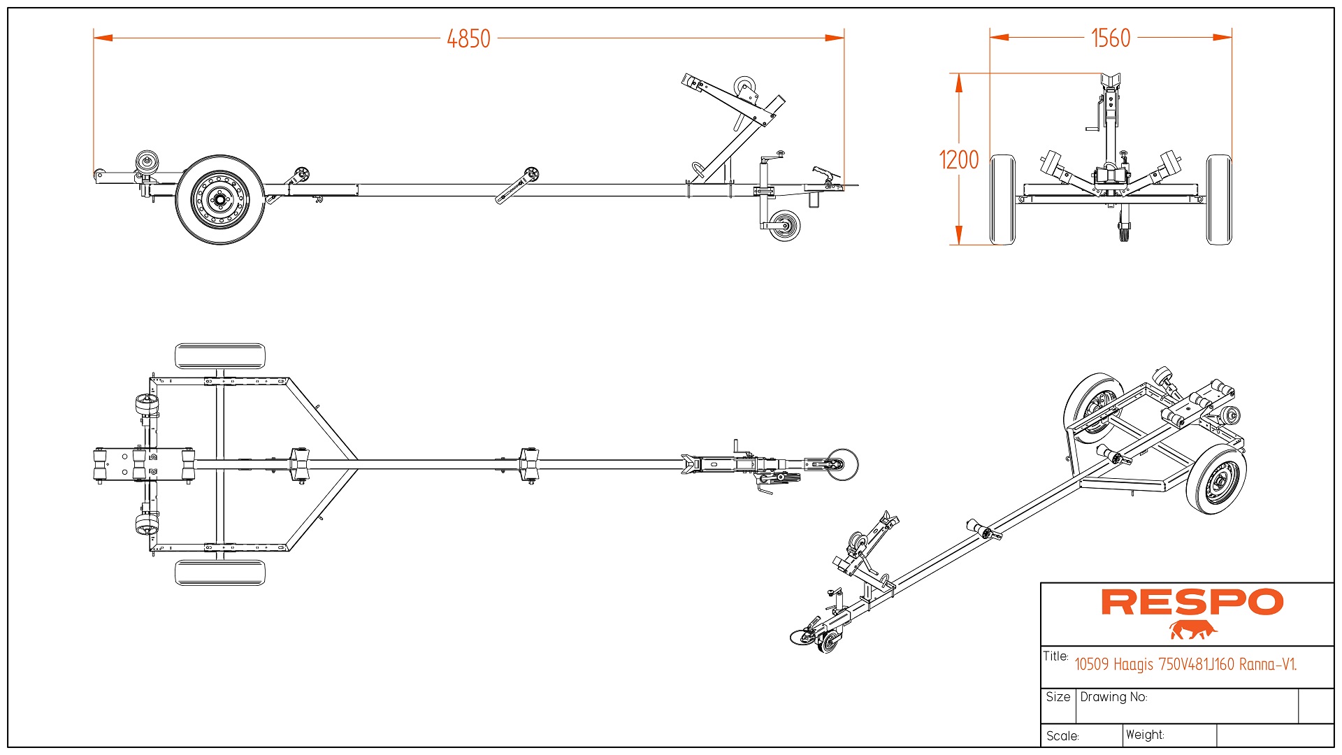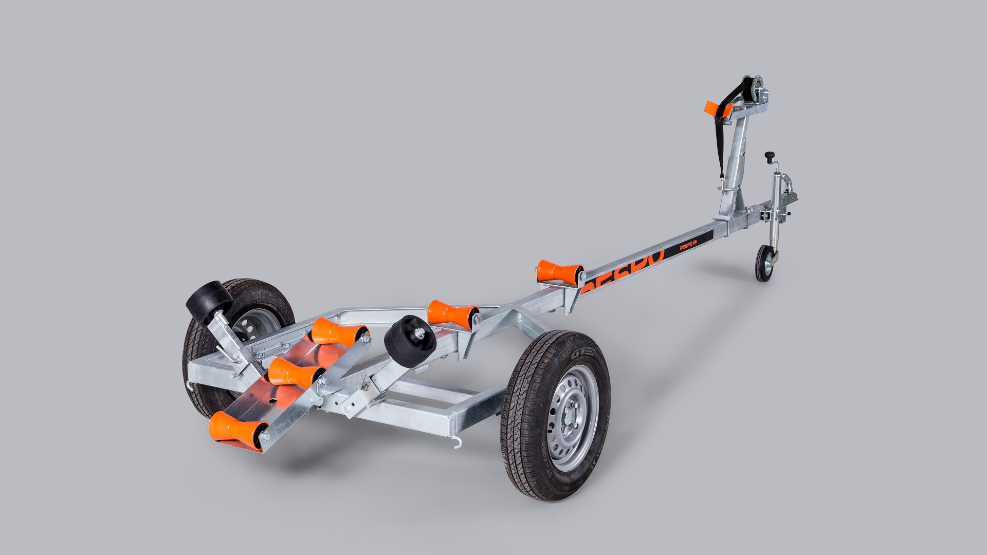 Respo RO 900 tar båter opp til 16 fot og har en nyttelast på 770kg. Solid varmgalvanisert og helsveiset stålramme. Kjølruller og justerbare sidestøtter hjelper båten til å ligge stødig og trygt på hengeren. Opplagshengere har ikke fjæring, skjermer eller lys og kan ikke kjøres på offentlig vei.