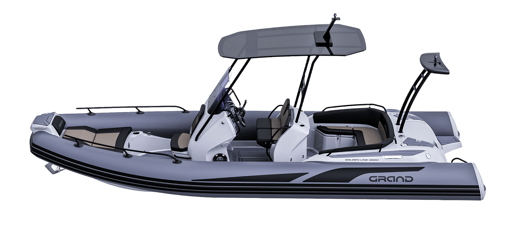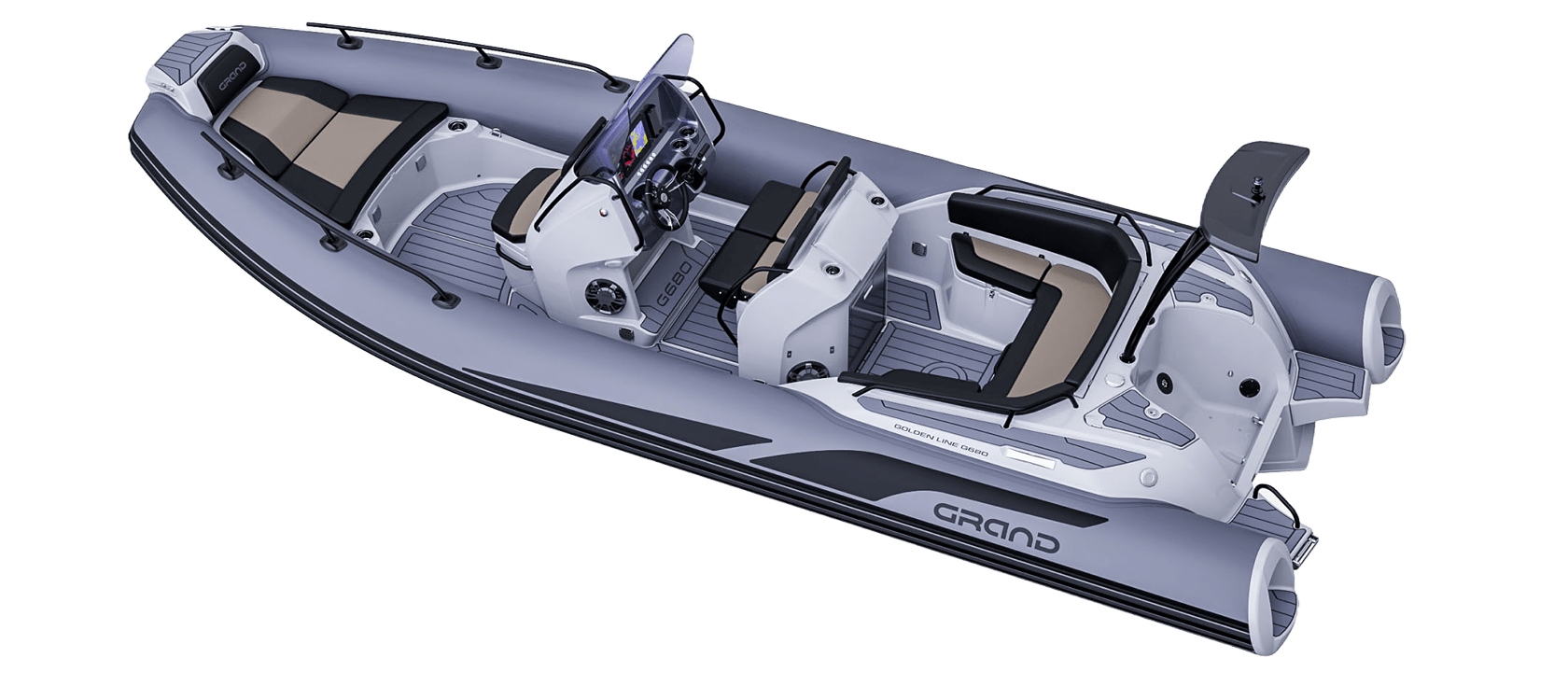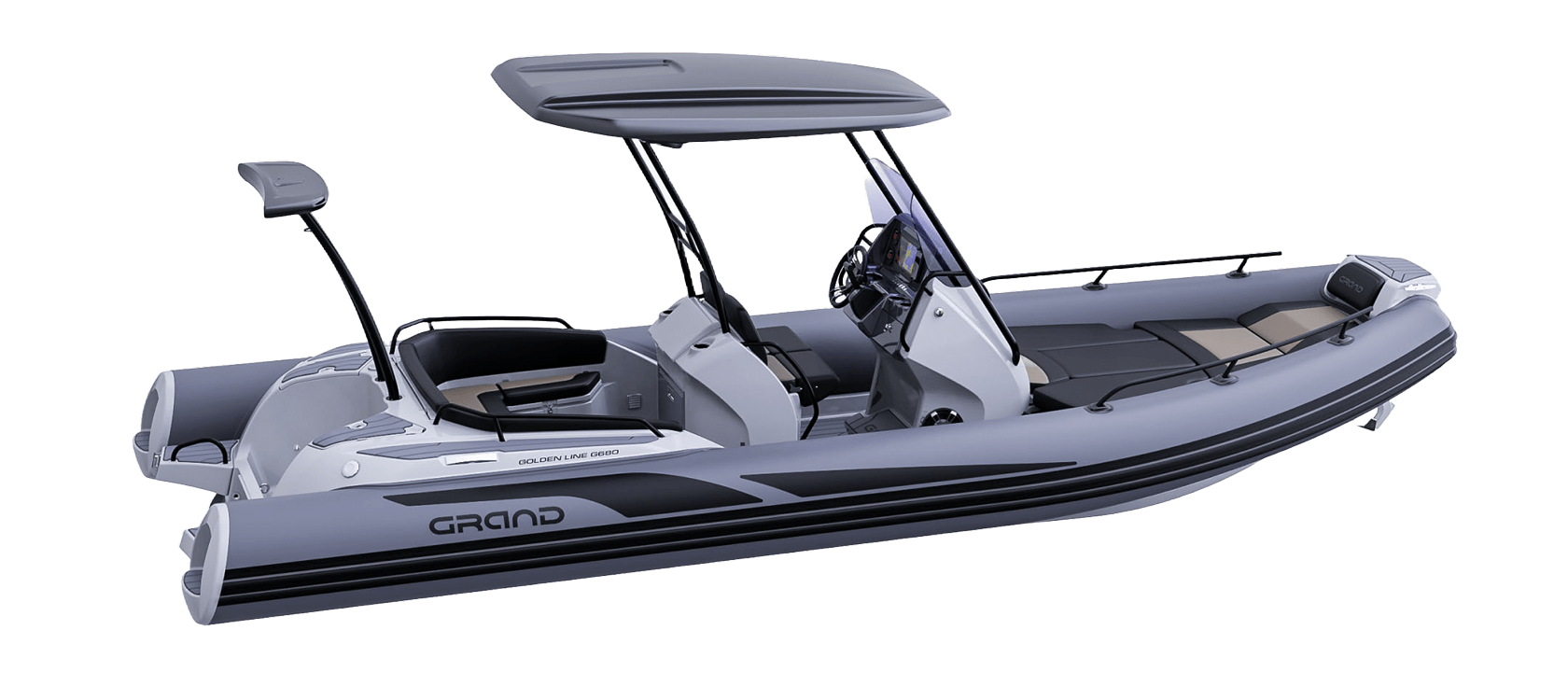 Grand 680 Golden Line er en moderne RIB-båt utviklet for norske forhold, med fokus på trygghet, brukervennlighet og gode sjøegenskaper. Grand 680 Golden Line egner seg godt til både familiebruk, transport og fritid på sjøen.