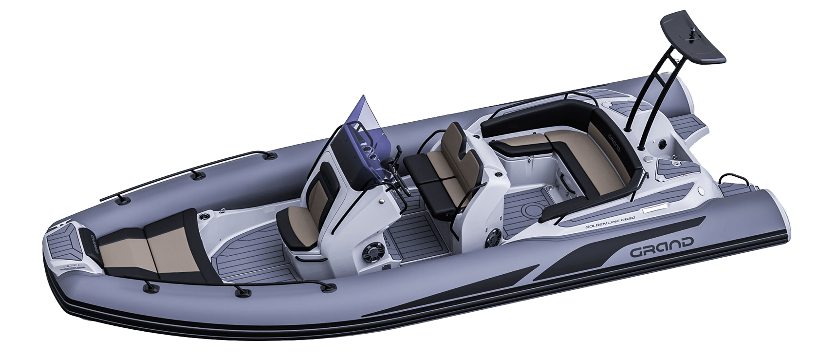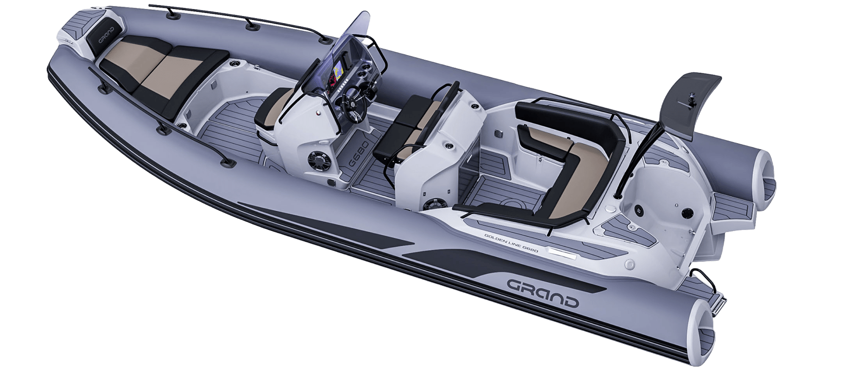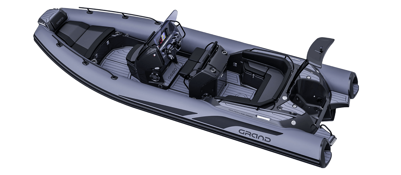 Grand 680 Golden Line er en moderne RIB-båt utviklet for norske forhold, med fokus på trygghet, brukervennlighet og gode sjøegenskaper. Grand 680 Golden Line egner seg godt til både familiebruk, transport og fritid på sjøen.