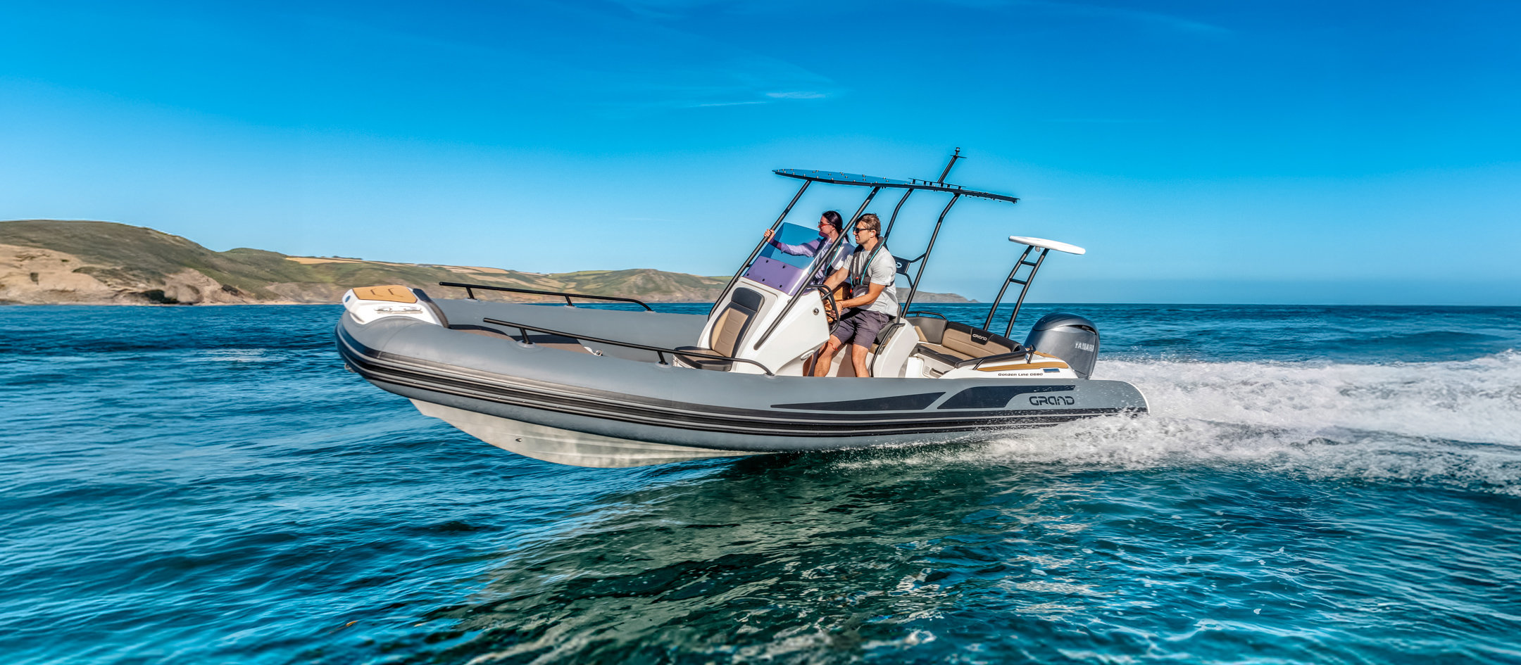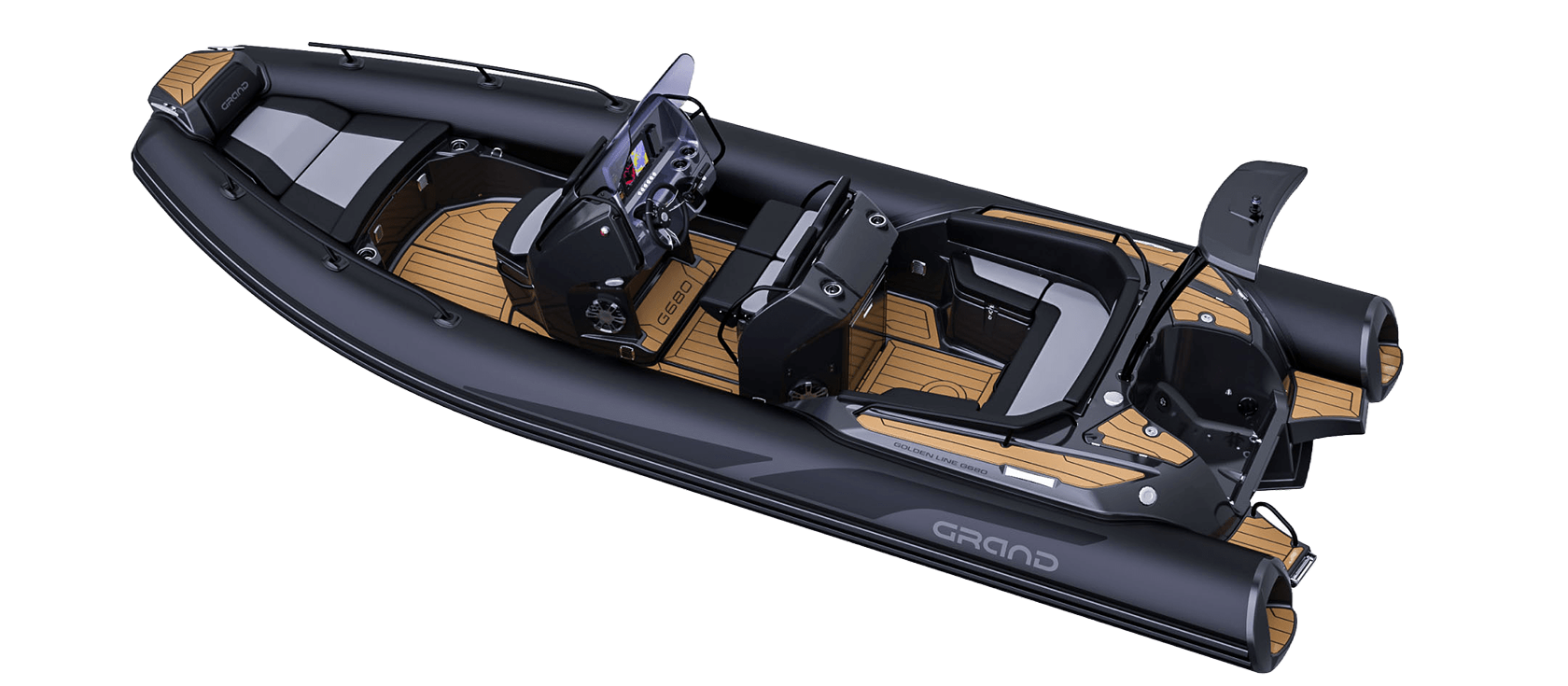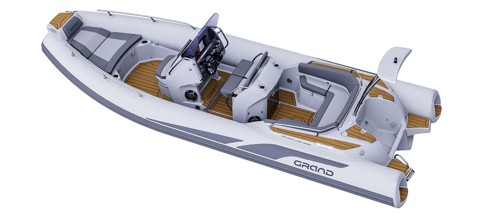 Grand 680 Golden Line kombinerer et solid glassfiberskrog med slitesterke Hypalon-slanger. Dette gir svært god stabilitet og en myk gange i bølger. Skroget er optimalisert for effektiv fremdrift og trygg håndtering i variert sjø.
