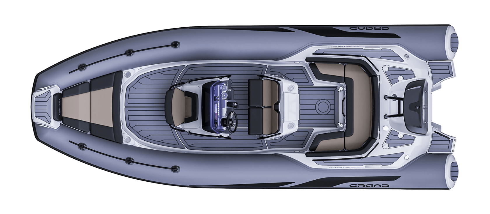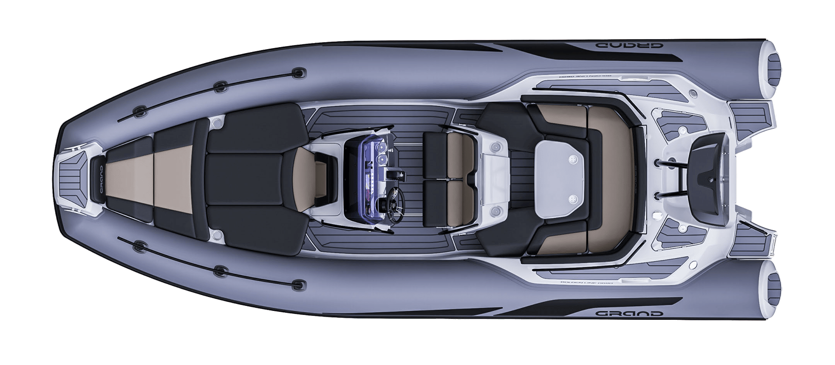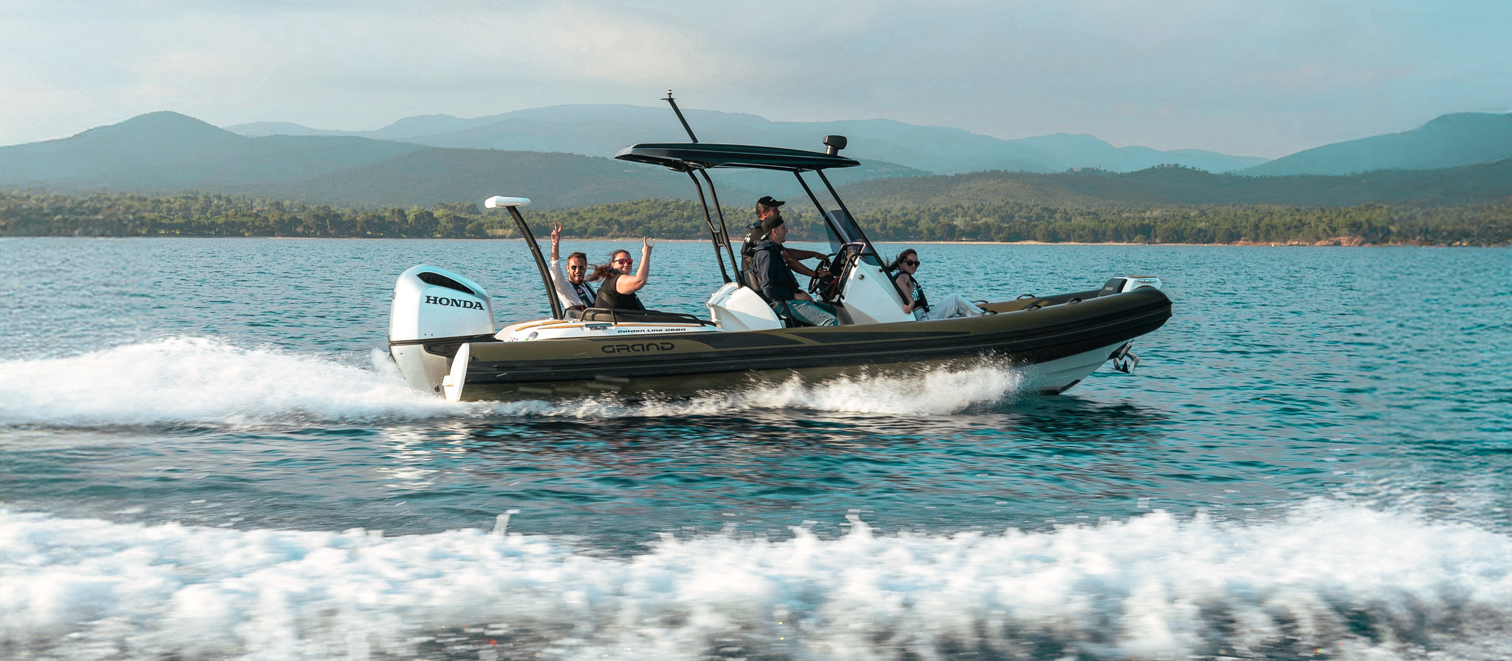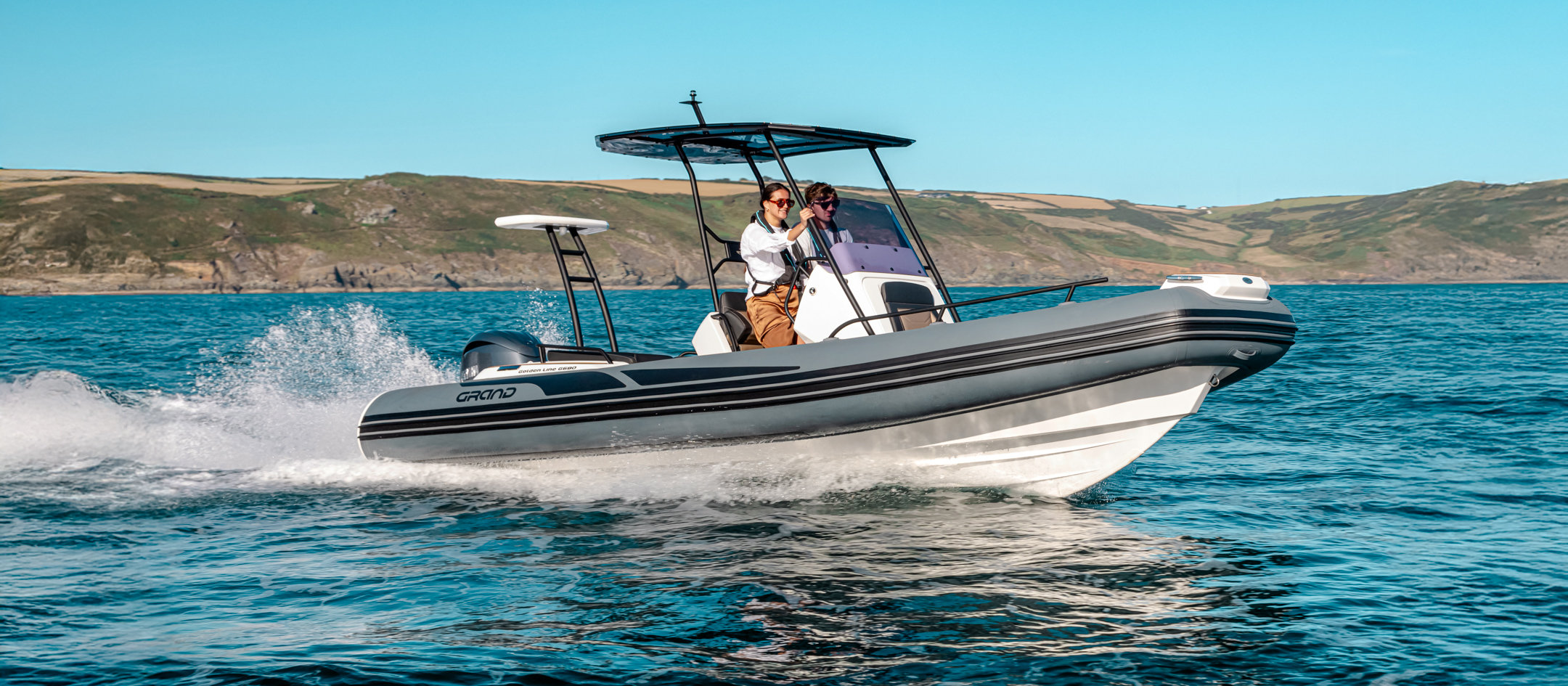 Grand 680 Golden Line kombinerer et solid glassfiberskrog med slitesterke Hypalon-slanger. Dette gir svært god stabilitet og en myk gange i bølger. Skroget er optimalisert for effektiv fremdrift og trygg håndtering i variert sjø.