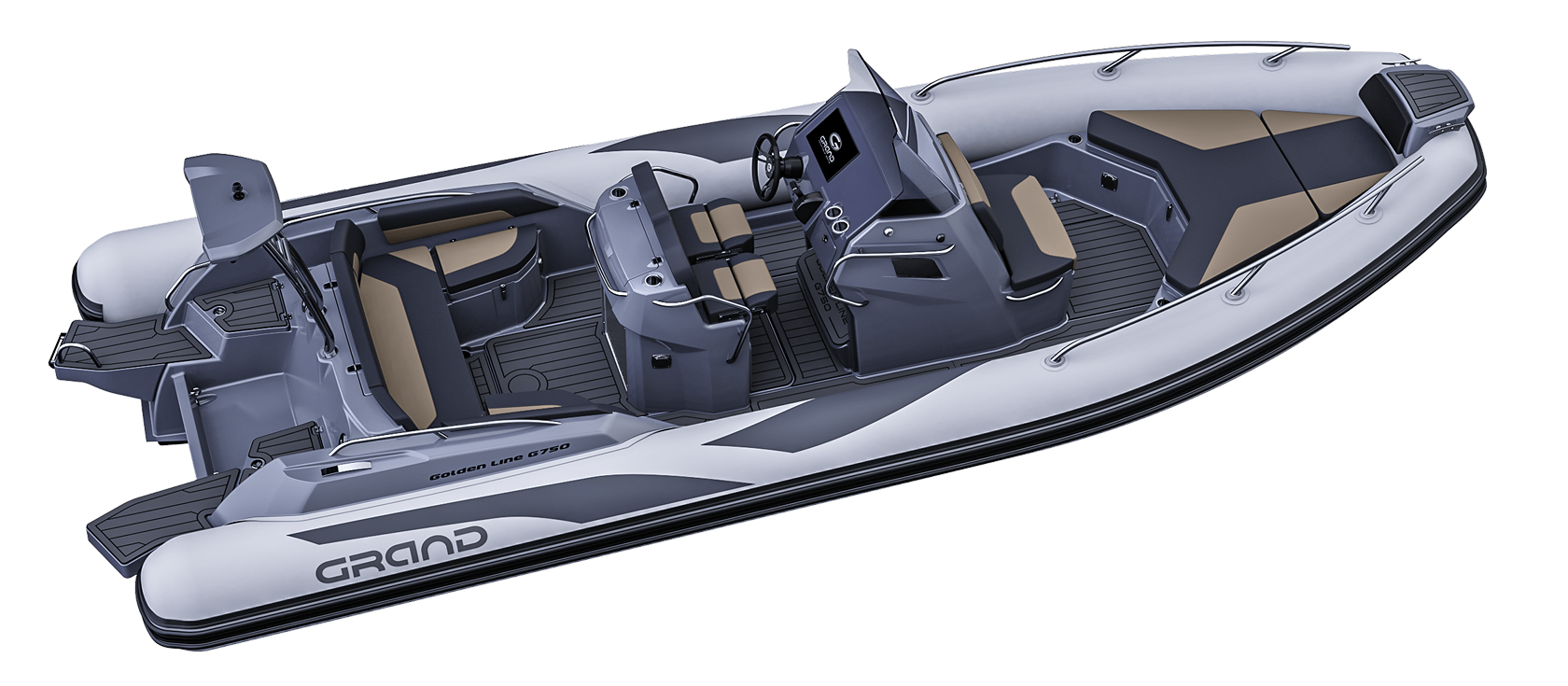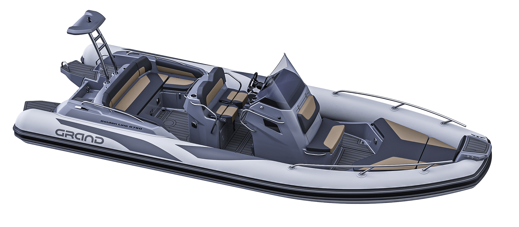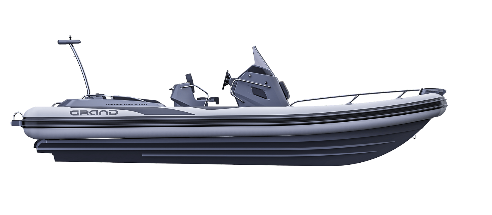 Grand 750 Golden Line er en moderne RIB-båt utviklet for norske forhold, med fokus på trygghet, brukervennlighet og gode sjøegenskaper. Grand 750 Golden Line egner seg godt til både familiebruk, transport og fritid på sjøen.