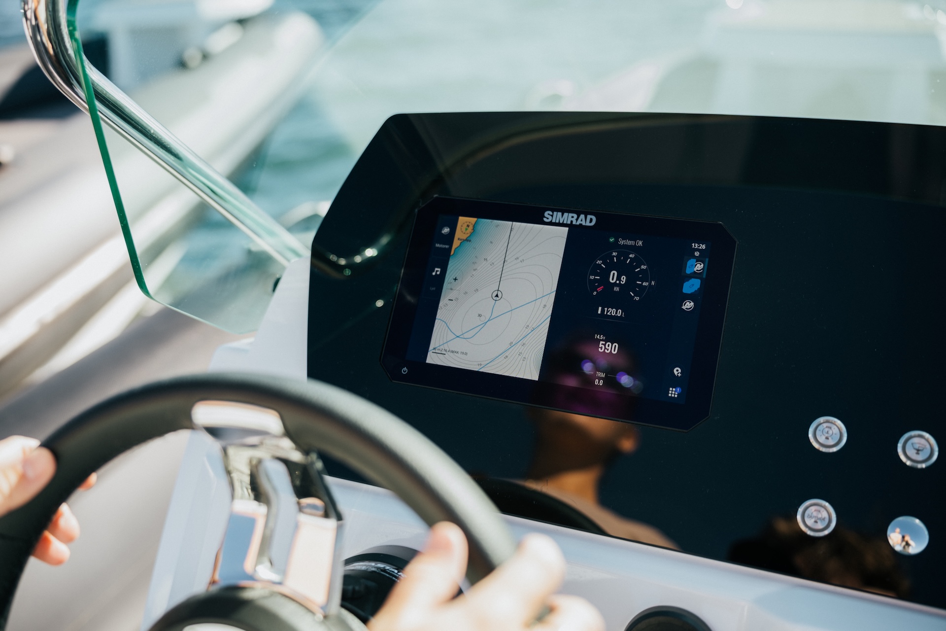 Båten har flere gode stuerom slik at du slipper å ha bagasje liggende åpent når du kjører. Fra baug til akter har du god plass til å bevege deg. Dette gjør det enklere for deg å manøvrere båten alene, dersom du er på tur alene. Som fører av Airborne 6.3 har du god oversikt og umiddelbar tilgang til alt du behøver for en trygg og effektiv ferdsel. Solsengen i baugen gir deg god plass for å ta det med ro.