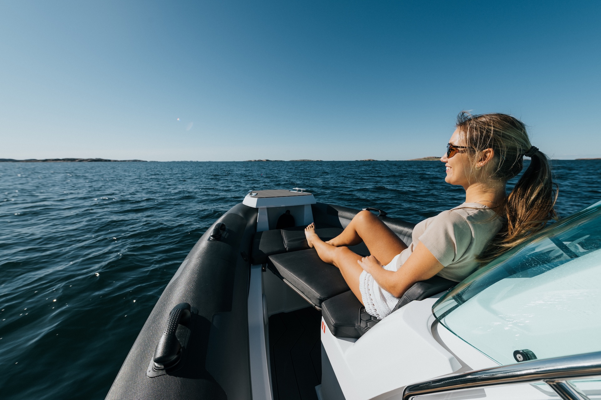 Airborne 6.3 slår langt over sin vektklasse og gir deg en komplett båt for dagsturer. I sann Airborne-ånd er den trygg og stabil, så du kan lene deg tilbake å nyte istedenfor å bekymre deg. Til tross for sin størrelse finner du flere måter å tilpasse båten på for ditt behov. Begge stolene ved konsollen kan roteres 180 grader – noe som skaper en sosial sone i akter. Om du skal bade, kaste anker eller legge til vil du ha god plass til å oppholde deg på badeplattformene.