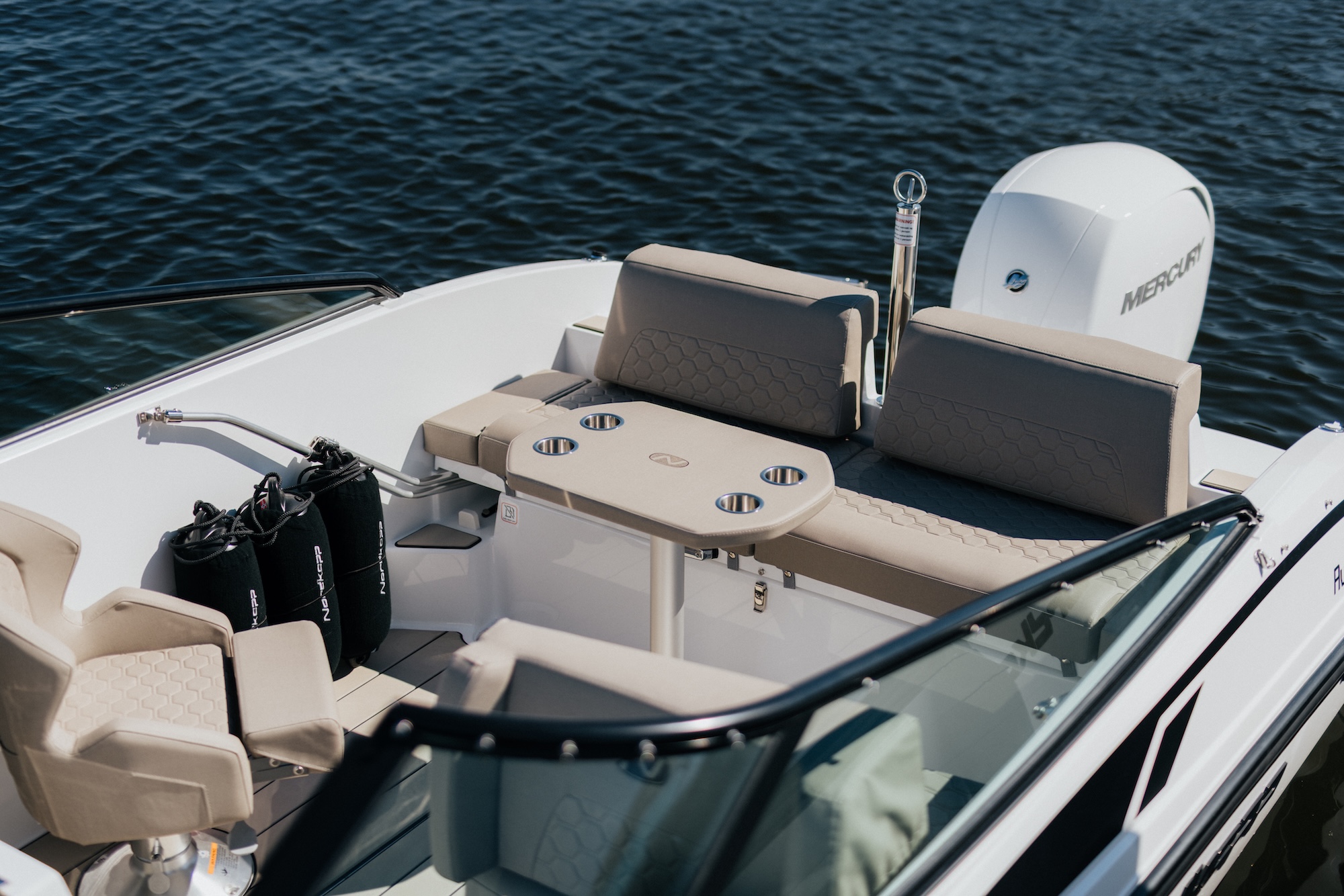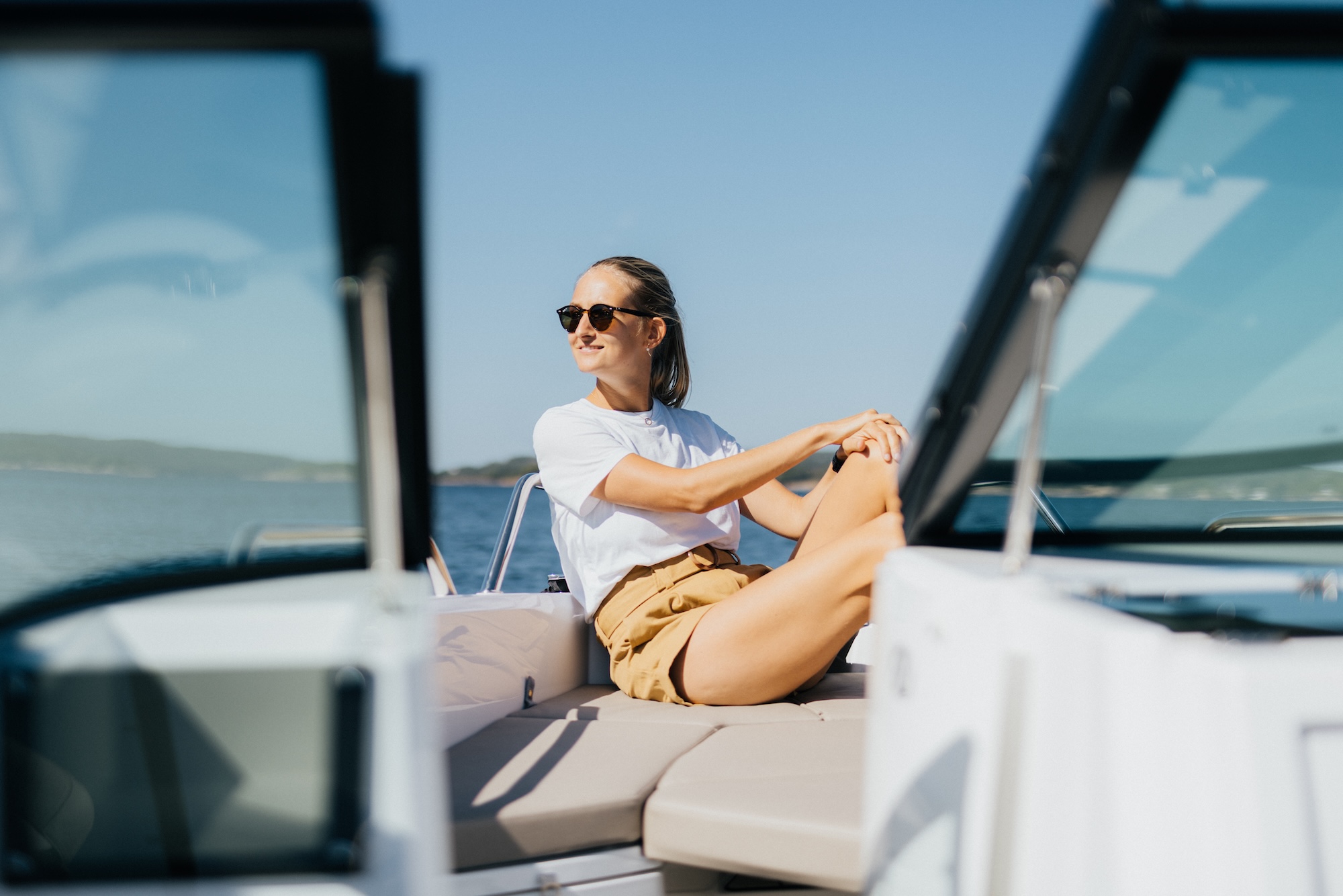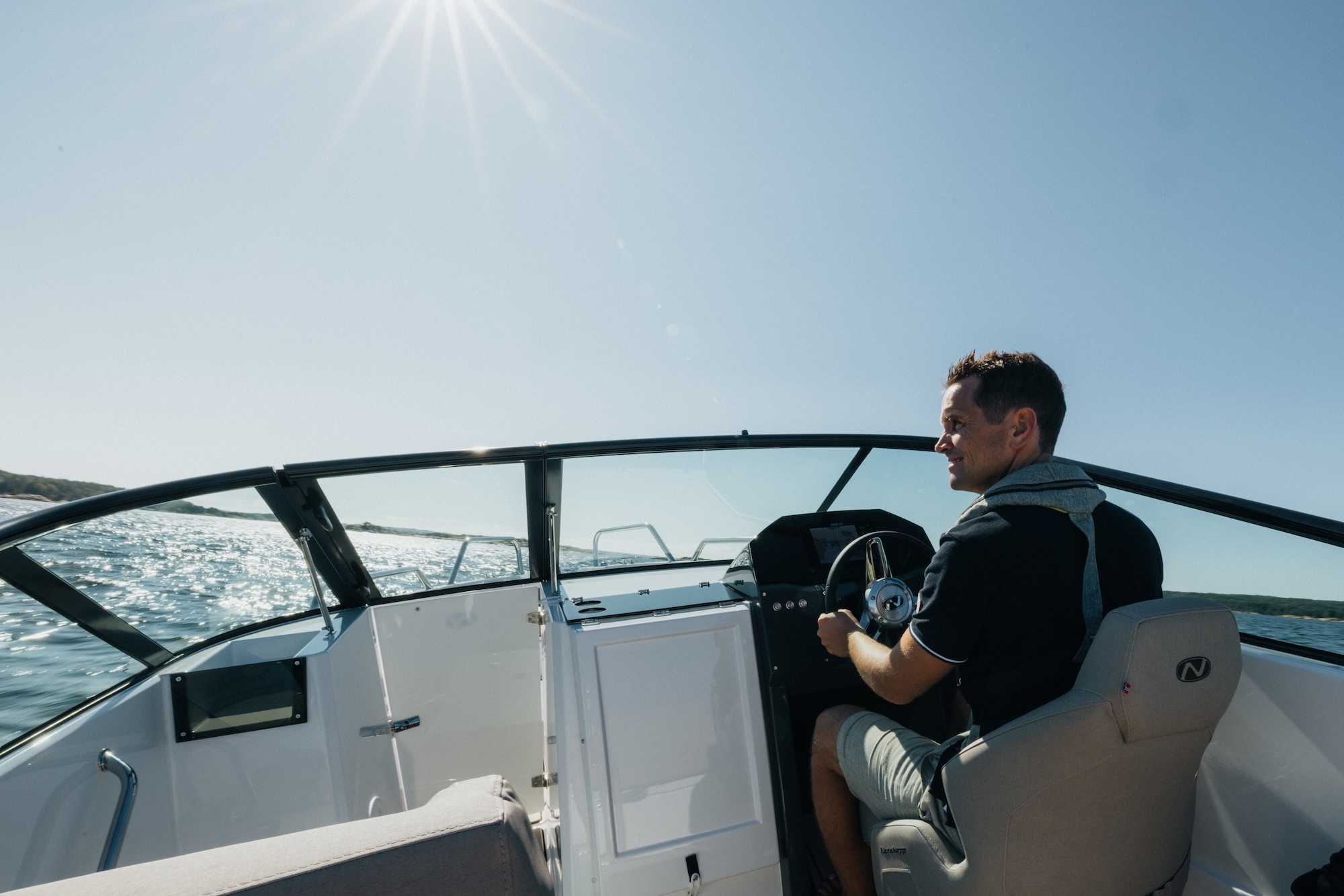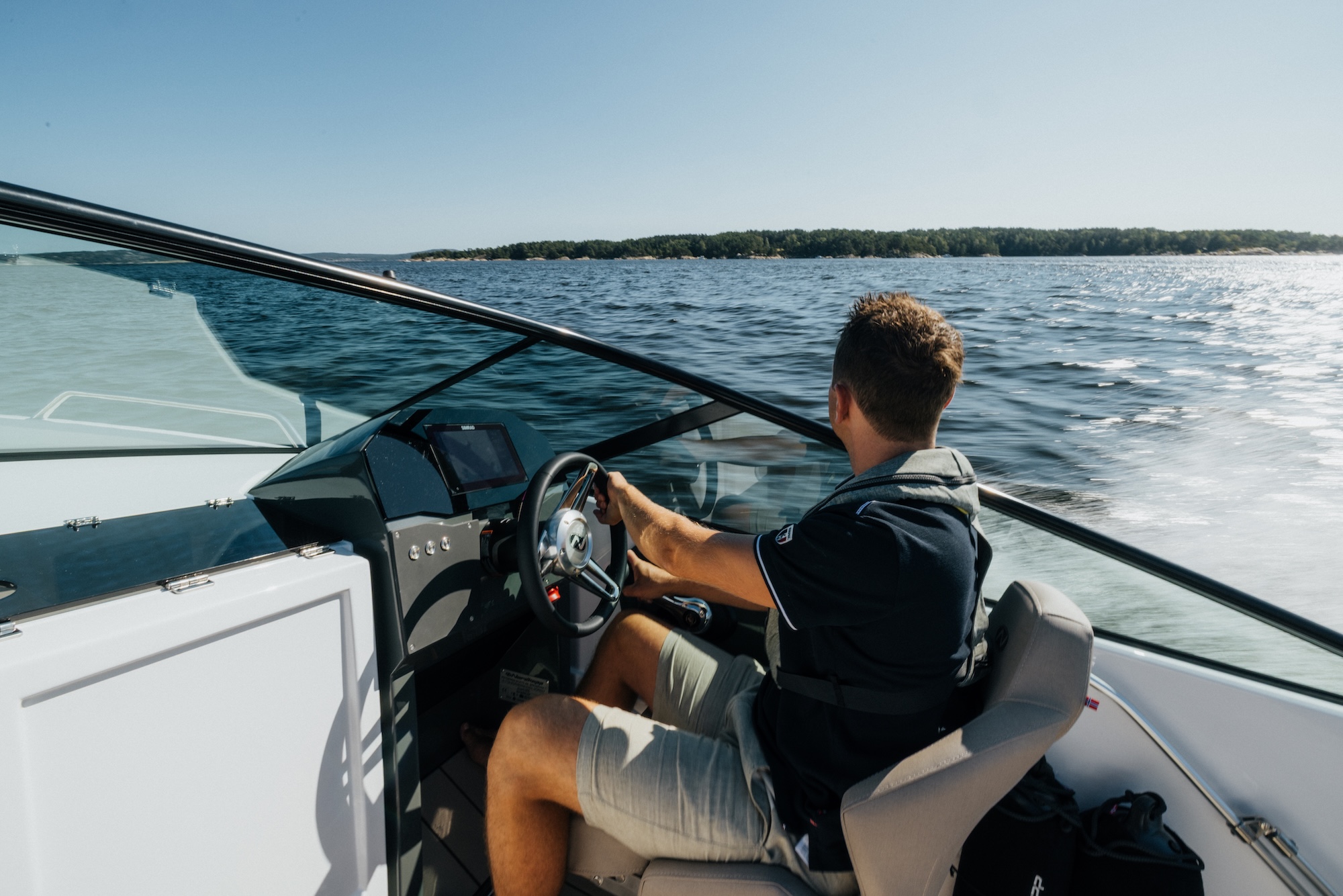 Den skarpe V-bunnen gir sportslige og stabile kjøreegenskaper, samtidig som båten oppleves komfortabel i både lav og høy fart. Det høye fribordet og den brede baugen gir også ekstra trygghet for alle om bord.
