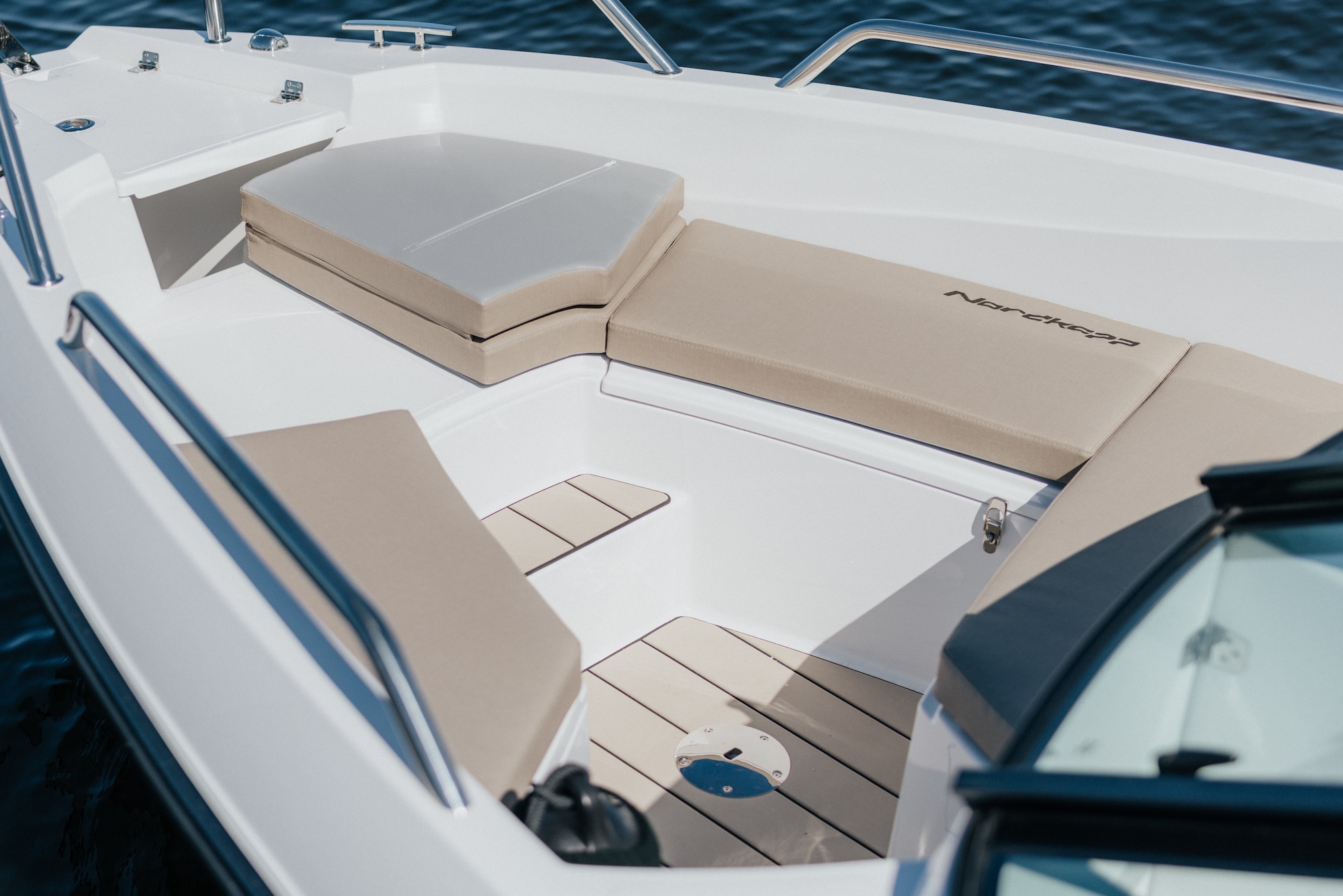 Akterdekket er en naturlig samlingsplass med komfortabel sittebenk, store badeplattformer og fleksibel layout. Her kan du enkelt tilpasse området etter behov – enten du vil slappe av i solen, bade eller nyte et måltid med venner og familie.
